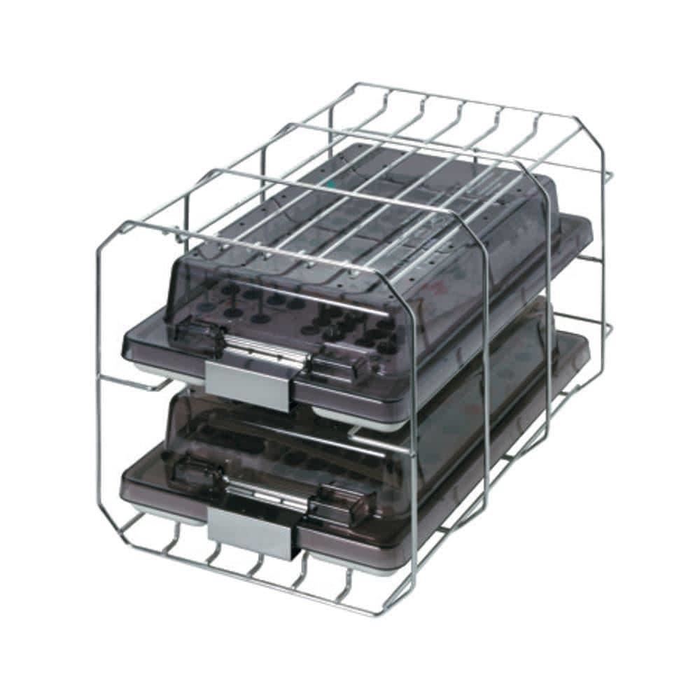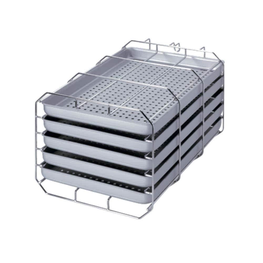 - Instrumentele cu o greutate de pana la 5 kg pot fi sterilizate pe 5 tavi in camera compacta de sterilizare (adancime 35 cm, volum 17 litri). Doua containere de apa speciale, ergonomice (pentru apa alimentata si cea uzata) sunt deja integrate in sterilizatorul cu aburi, precum si monitorizarea importanta a calitatii apei.