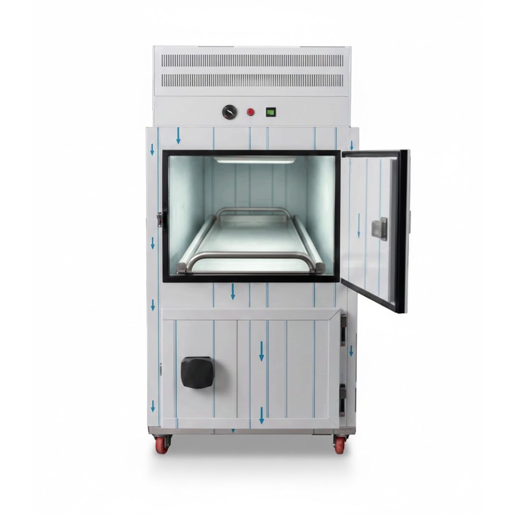 TOMU 6020 este o camera mortuara modulara destinata pastrarii temporare a corpurilor in conditii controlate, in cadrul spitalelor, institutiilor medico-legale sau serviciilor funerare. Realizata din otel inoxidabil 304, unitatea este proiectata pentru utilizare practica, igienica si durabila. Configuratia cu 2 compartimente si usi frontale duble permite acces facil si organizare eficienta in fluxurile specifice activitatii mortuare.