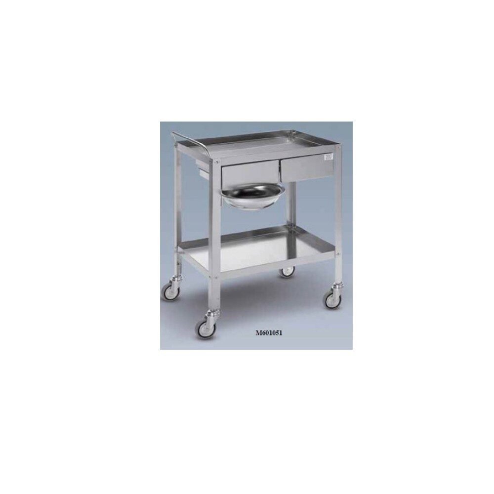 Carucior instrumentar, 2 polite, cu sertare si bol M601051