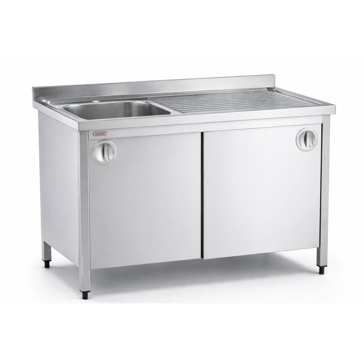 Chiuveta pentru spalare instrumentar cu dulap TINI 4040, din inox, cu doua cuve si usi glisante duble