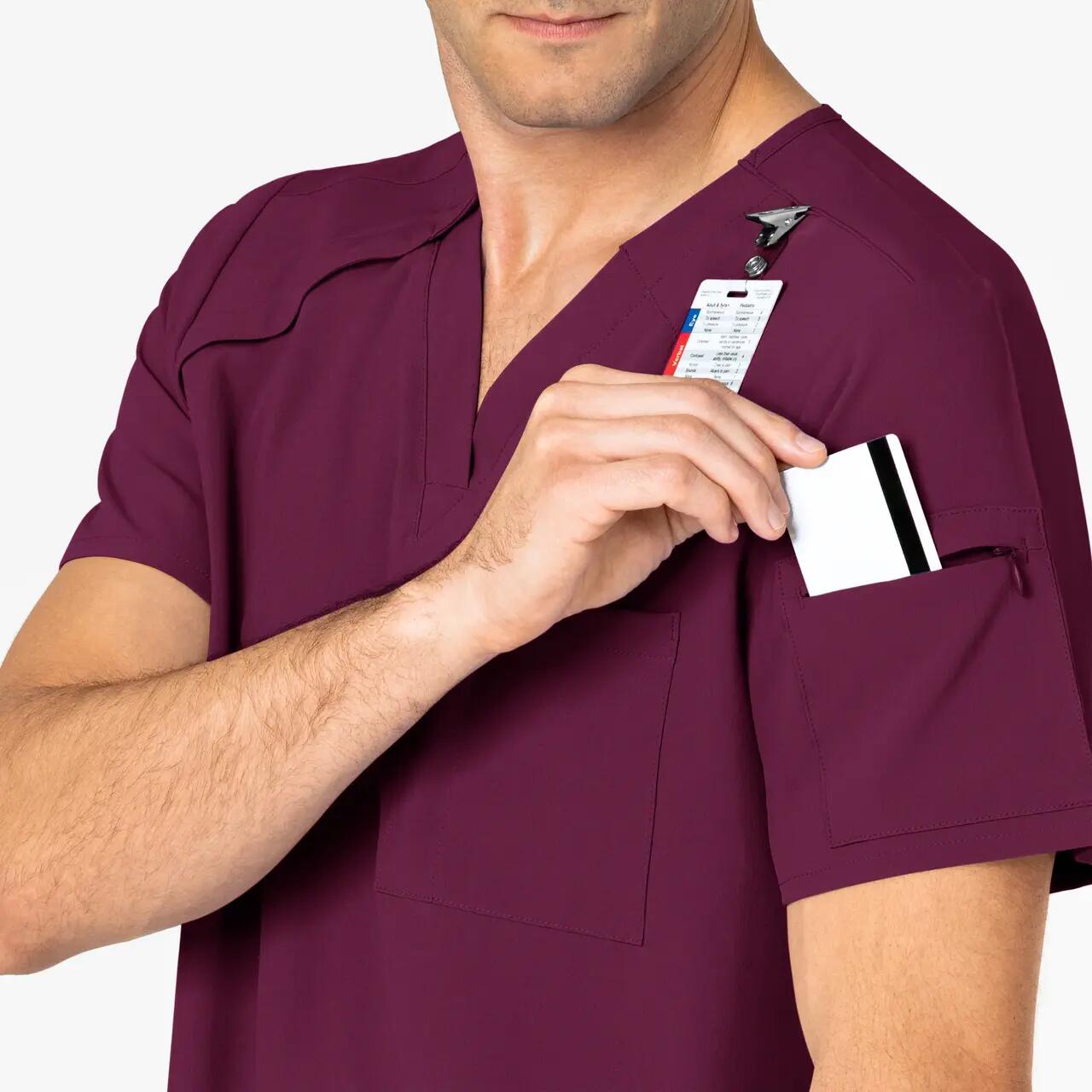 Bluza medicala practica si moderna, cu fermoar ascuns si croiala adaptata corpului masculin, ideala pentru profesionistii din domeniul medical care cauta confort si functionalitate.