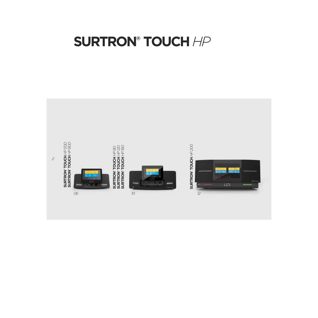 Surtron Touch HP 200 este generatia urmatoare a modelului Surtron Touch 200, cu imbunatatiri semnificative: interfata LeOS redesenata, functii noi TUR bipolar si MICRO bipolar, alimentare universala 100-240V fara selector, dimensiuni mai compacte (370x145x300mm fata de 370x144x319mm) si greutate mai mica (5,8kg fata de 6kg). Ambele modele au frecventa de lucru de 360 kHz si bipolar nativ.