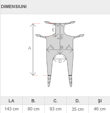 Ham standard cu tetiera pentru ridicarea si transferul pacientilor, conceput pentru sustinere sigura si pozitionare controlata in timpul manevrelor, materialele sunt alese pentru rezistenta, confort si utilizare practica, inclusiv in conditii in care este posibil contactul cu apa, produs fabricat in Italia