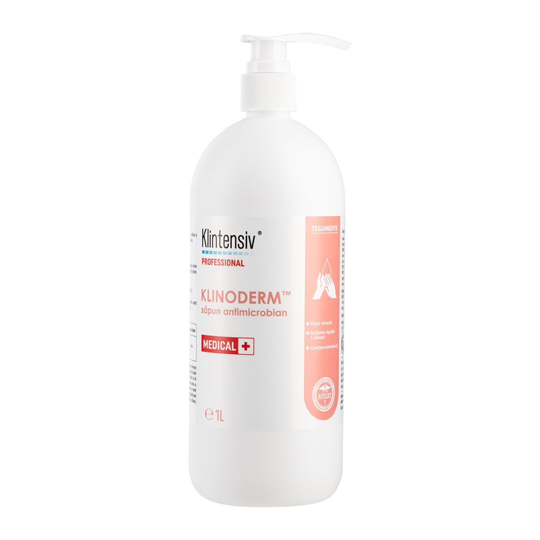 KLINODERM Sapun antimicrobian, fara parfum - lichid vascos destinat curatarii si dezinfectarii igienice si chirurgicale a mainilor prin spalare, respectiv decontaminarii preoperatorii a pielii intacte.