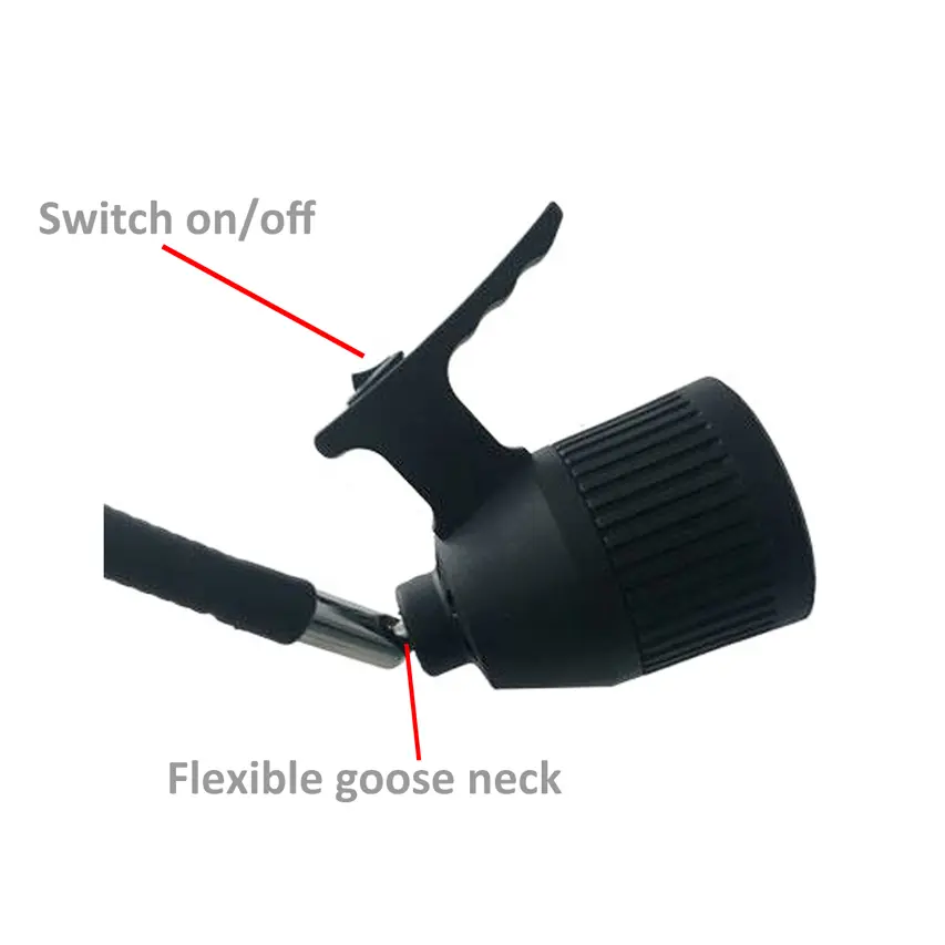 - Maner integrat pe capul lampii, baza ABS cu frana