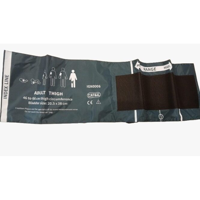 Manseta este destinata masurarii tensiunii arteriale la nivelul coapsei la pacientii adulti, atunci cand circumferinta bratului este prea mare pentru o manseta standard. Este compatibila cu majoritatea tensiometrelor automate si manuale, avand sistem de prindere cu banda Velcro (arici).