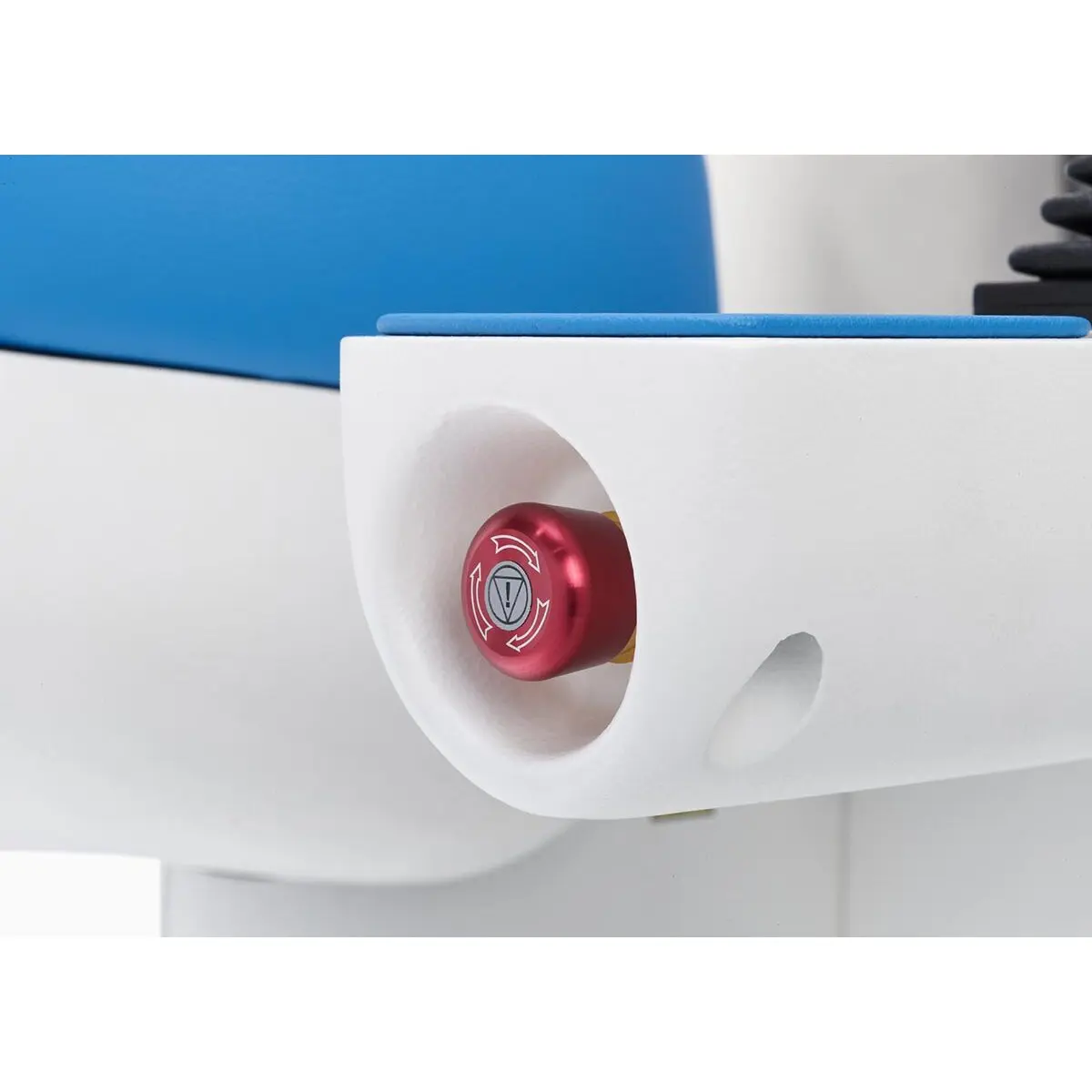 Masa LS Comfort permite ajustari fine pe axele X, Y si Z, oferind pozitionarea exacta a pacientului in raport cu punctul focal al laserului. Sectiunea pentru cap poate fi ridicata electric cu 50 mm si inclinata manual intre -20° si +5°, pentru o ergonomie optima in timpul interventiei. Miscarile sunt controlate printr-un joystick analogic de precizie, care asigura o viteza reglabila intre 0.2 mm/sec si 12 mm/sec, permitand o manipulare lina si sigura.
