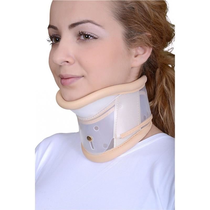 Guler cervical rigid din polietilena cu sustinere pentru barbie si cap ce limiteaza miscarile gatului, detensioneaza regiunea cervicala si amelioreaza durerea.