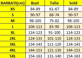 Bust: Expirati, apoi masurati sub axila circumferinta cea mai mare a bustului.