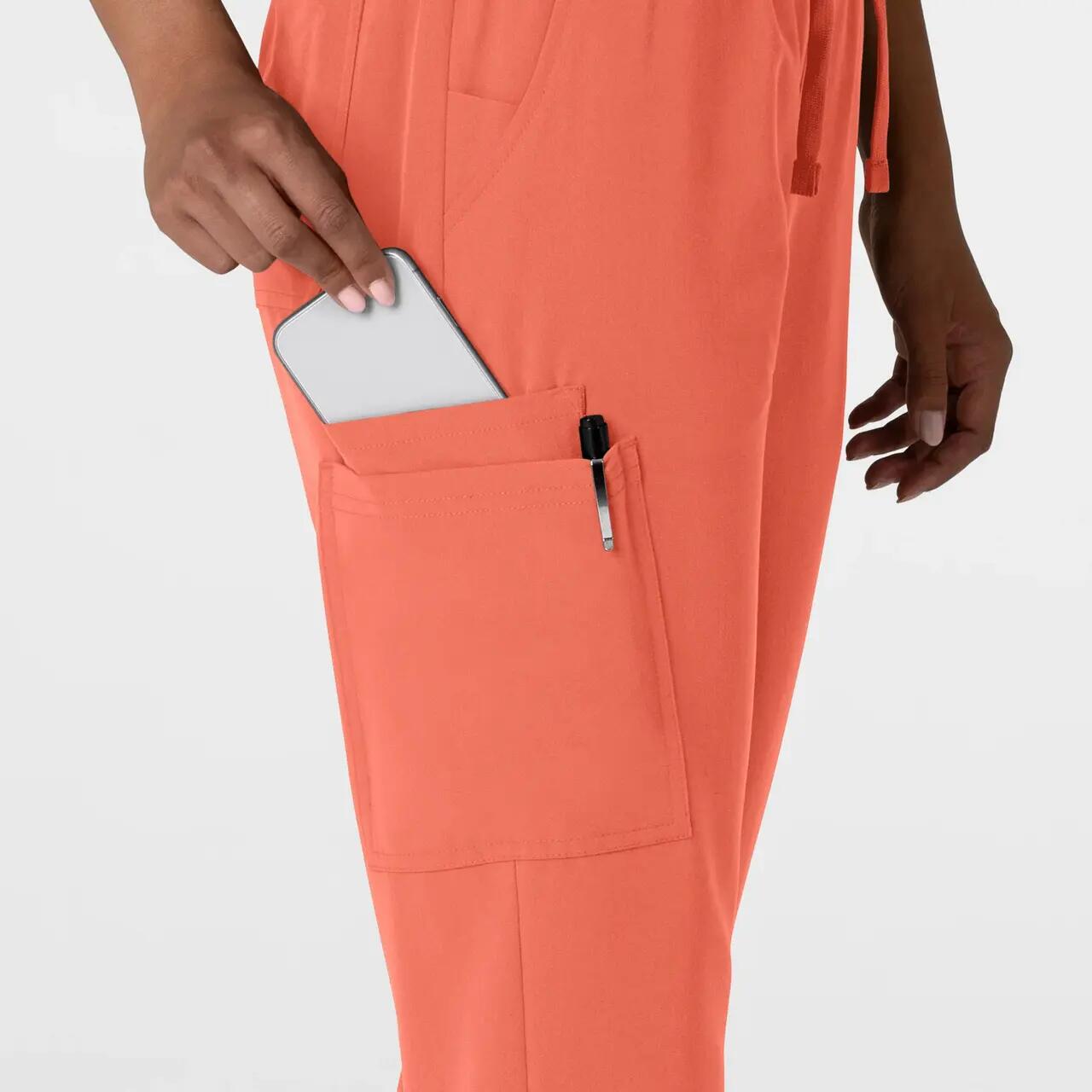 Cu croiala jogger moderna, talie medie elastica si material flexibil realizat predominant din fibre reciclate, acest model este ideal pentru ture active in spitale, clinici sau cabinete medicale.