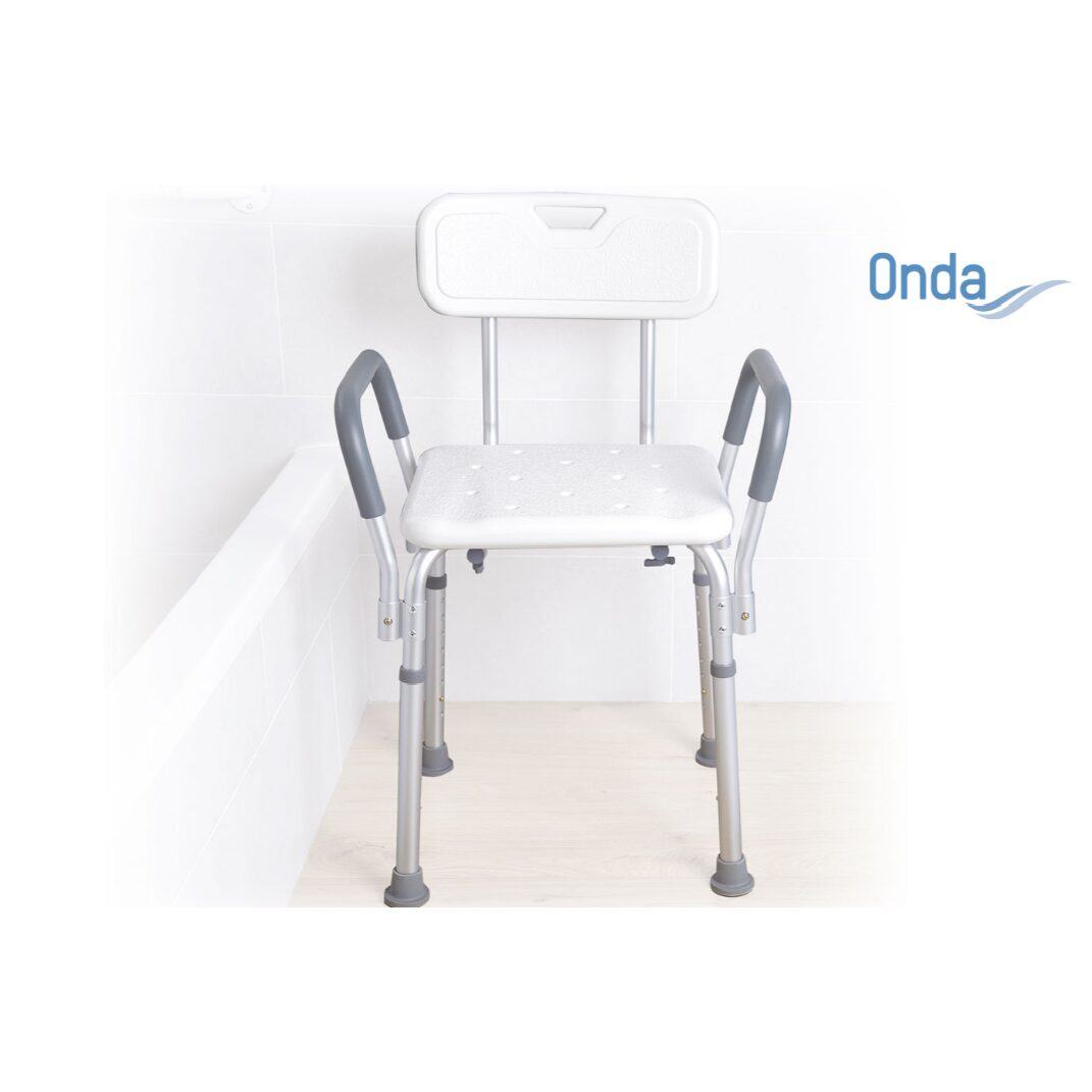 Scaun de dus, aluminiu, spatar, reglabil pe inaltime, greutate maxima 136 kg