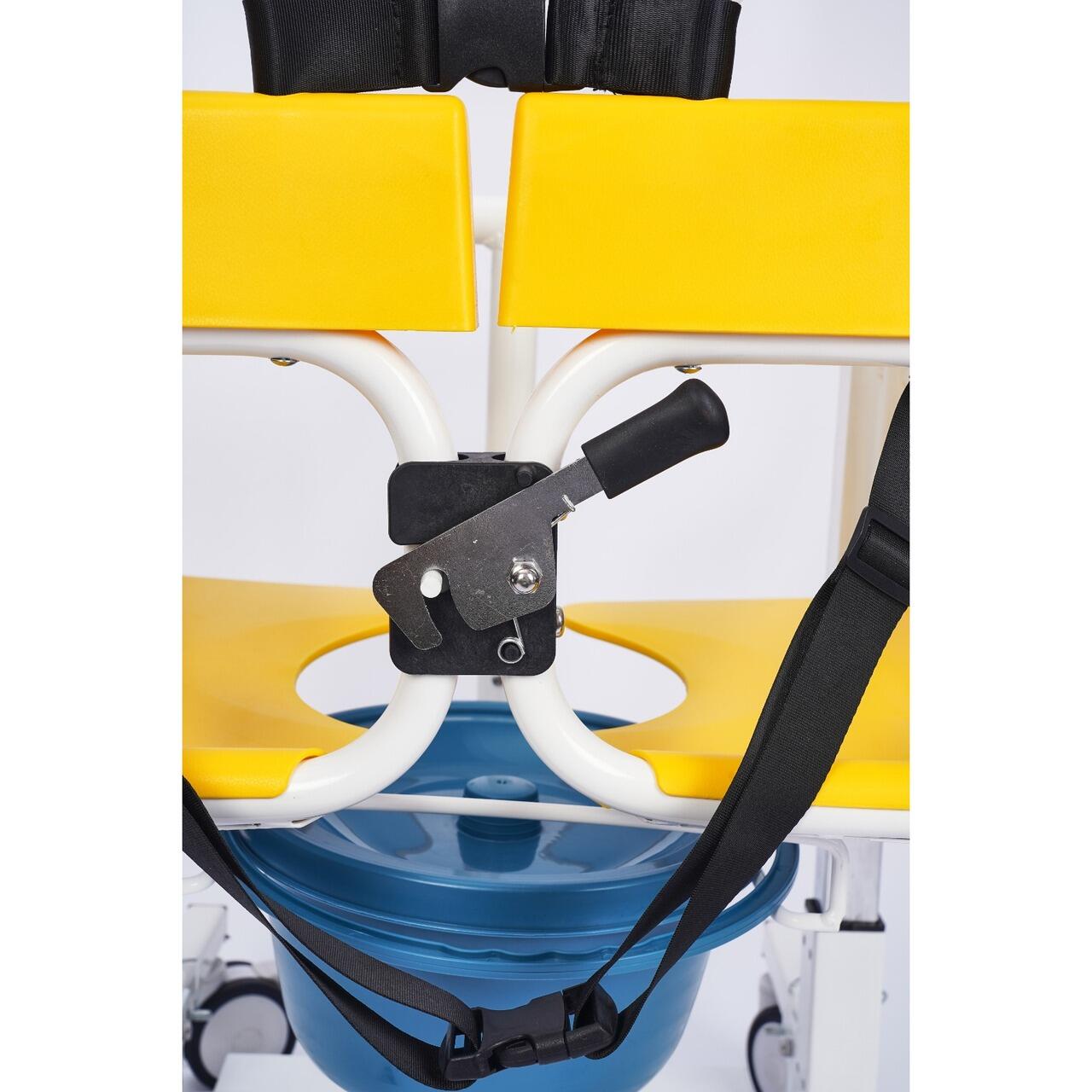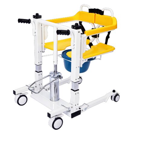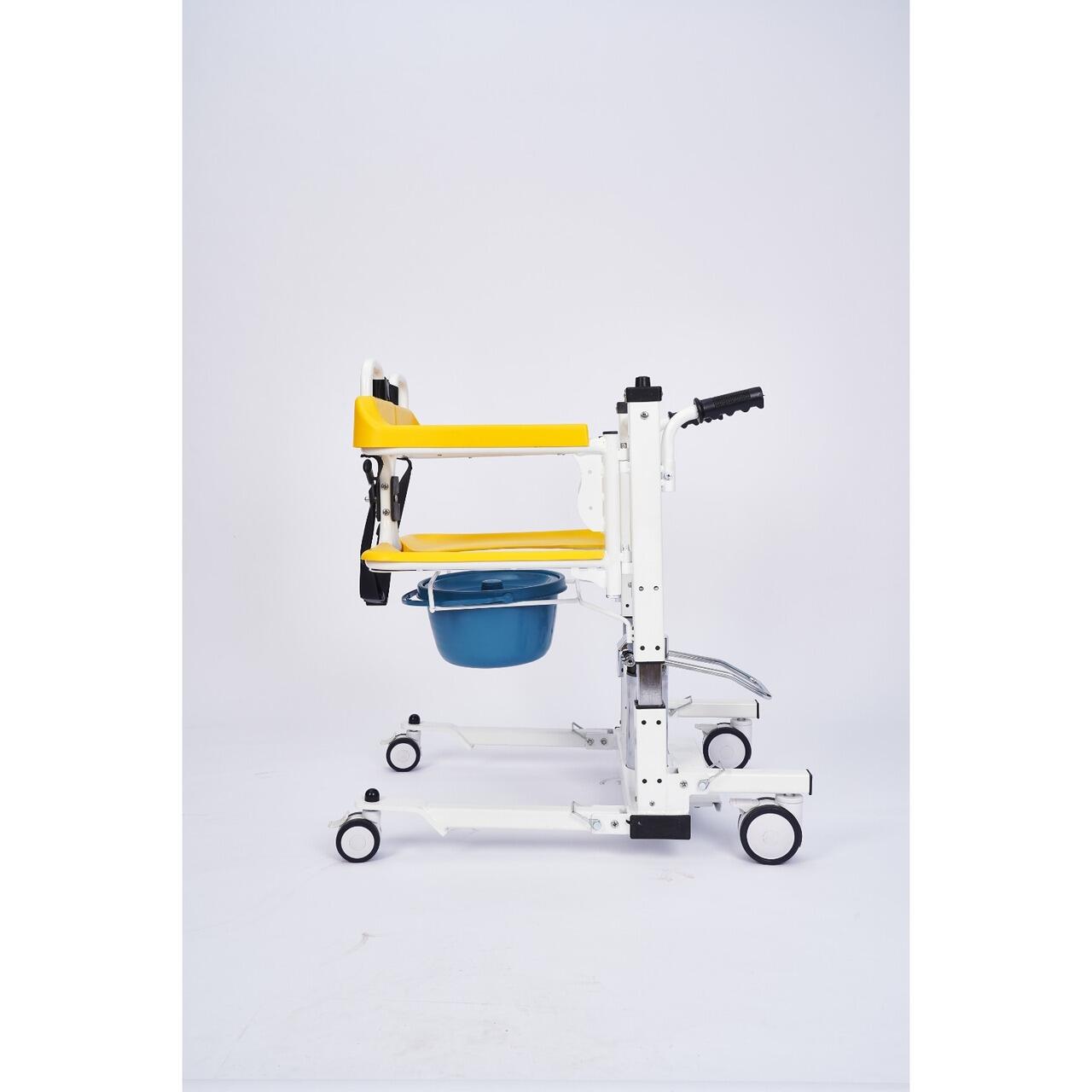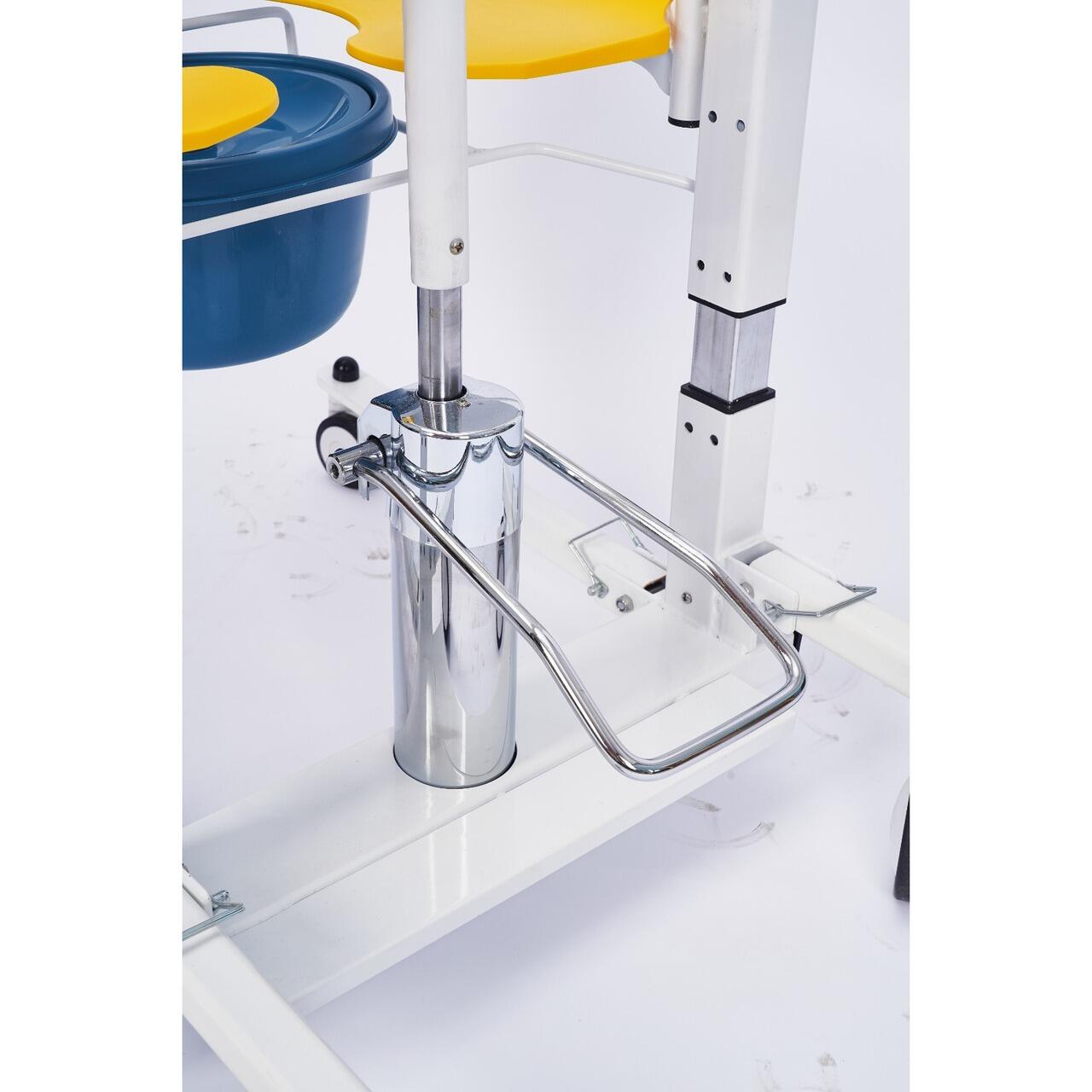 Scaunul hidraulic multifunctional pentru transfer este proiectat pentru persoane cu mobilitate redusa, bolnavi, varstnici sau persoane slabite destinat transferului pacientului in interior, intre pat, scaun si toaleta, precum si pentru utilizare ca scaun de toaleta, cu vas colector.