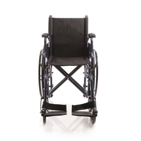 Carucior cu rotile, pliabil pentru transportul pacientilor cu mobilitate redusa, realizat pe cadru din otel vopsit dublat (intarit), cu actionare manuala, sezut de 40 cm, buzunar spate pentru transportul actelor, manere semi-lungi rabatabile pe doua nivele, cu sistem flip-up pentru a facilita apropierea de masa.