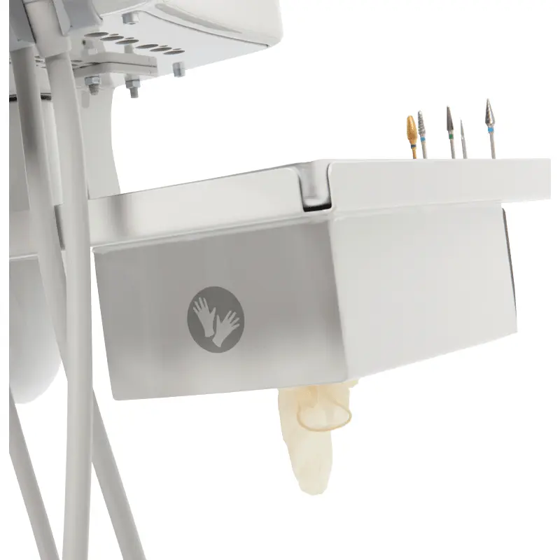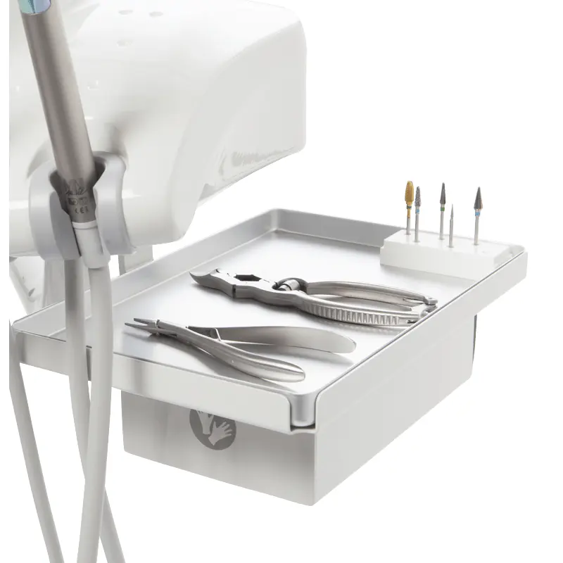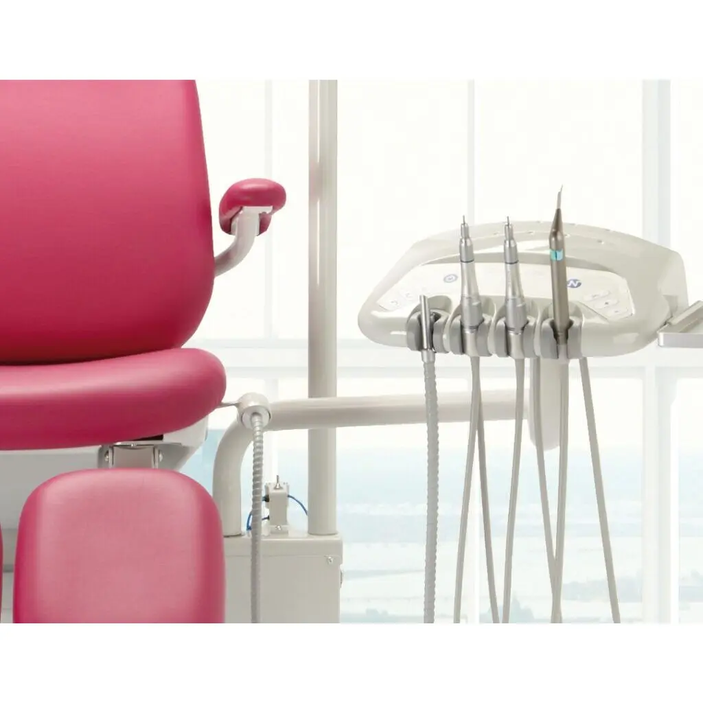 Epsylon este solutia perfecta pentru cabinetele cu spatiu limitat, oferind flexibilitate si accesibilitate in orice situatie. Bratul montat pe scaun, impreuna cu consola de instrumente reglabila, asigura o organizare optima si un flux de lucru eficient.